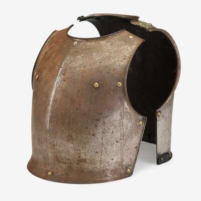 The breastplate with medial ridge and gilt domed rivets, together with a similar backplate, without shoulder straps, engraved to the interior "Manufre. Role Châtellerault, Juin 1842" and further marked 2T, 2L.