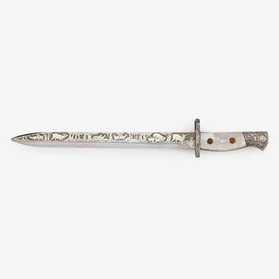 Continental silver-plated and mother-of-pearl bayonet with the cypher of King Leopold II, 19th century