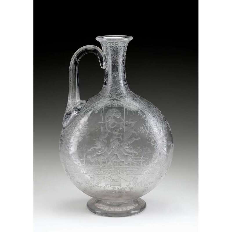 Fine engraved glass pilgrim's flask likely Stourbridge, England, mid to late 19th century