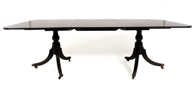 The rounded rectangular top with fluted edge over two baluster turned supports, raised on outswept fluted legs terminating in bronze hairy paw feet and casters.
