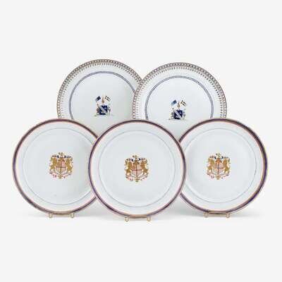 Five Chinese export armorial porcelain dishes 18th/19th century