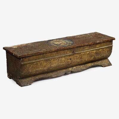 Italian carved gilt gesso pastiglia and polychrome painted cassone probably Venice, first half 16th century and later