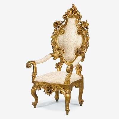 Italian Baroque style carved and giltwood armchair 19th century, probably Venice