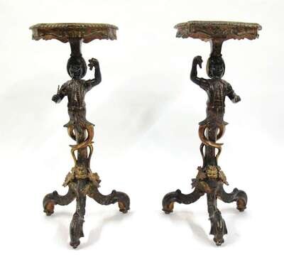 Pair of Italian polychrome and gilt painted blackamoor plant stands 19th century
