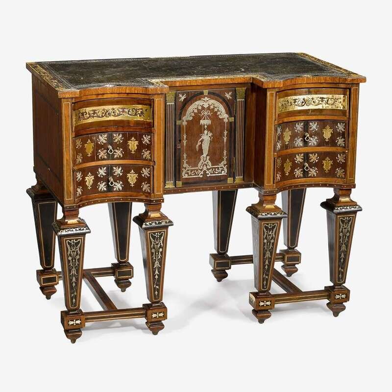 Louis XIV style brass and steel inlaid oak Bureau Mazarin 19th century and later