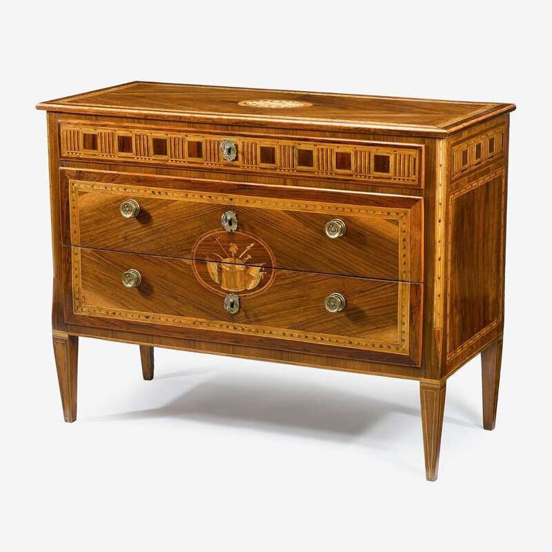 Fine north Italian walnut and fruitwood parquetry and marquetry commode late 18th century