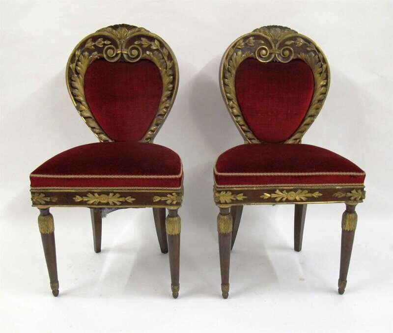 Pair of Louis XVI heart back parcel gilt mahogany side chairs late 18th century
