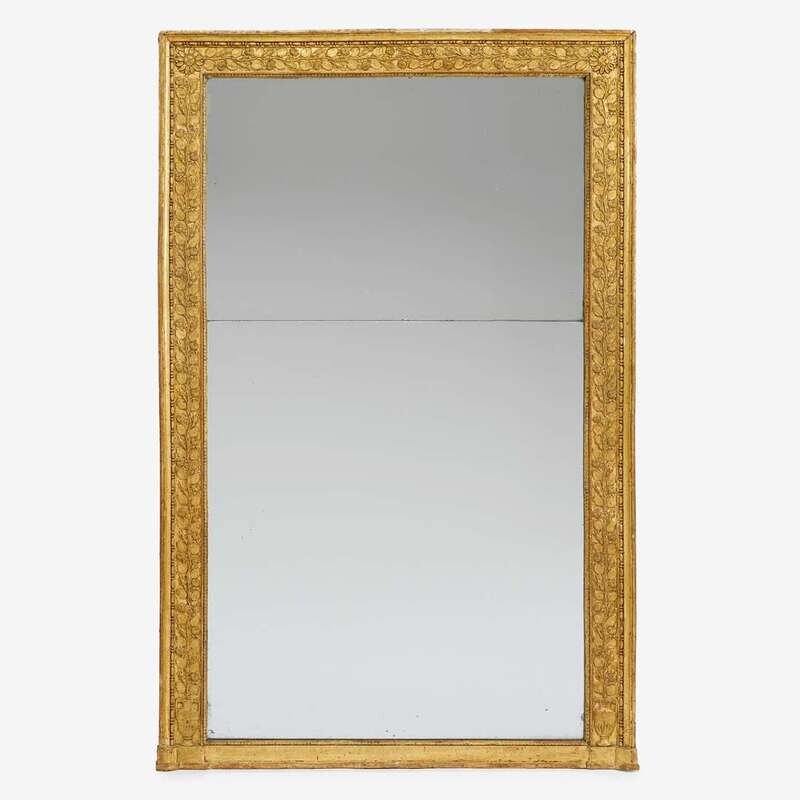 The rectangular mirror plate within lambs tongue sight surrounded by foliate carved frame with paterae to corners.