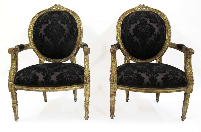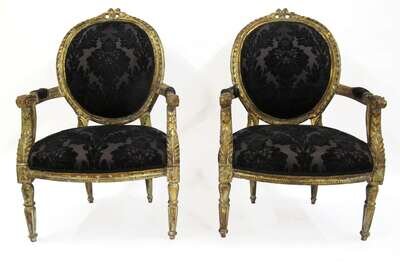 Pair of Louis XVI style carved giltwood fauteuils à la reine late 19th/early 20th century