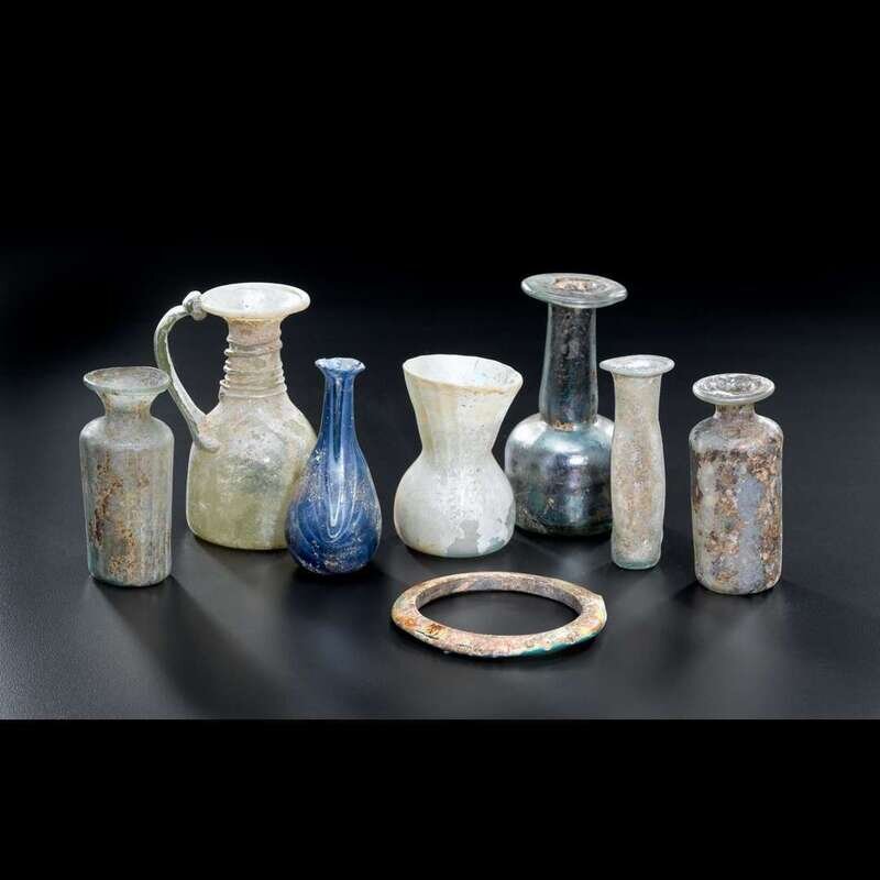 Seven Roman glass vessels circa 1st-3rd century A.D.