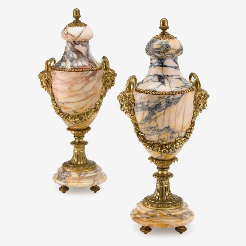 Pair of French ormolu and variegated marble urns 19th century
