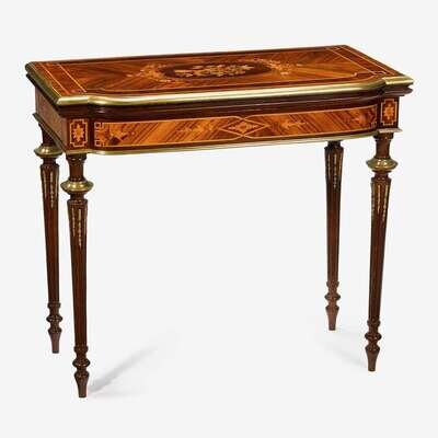 Fine Napoleon III rosewood, mahogany and fruitwood fold over games table circa 1870