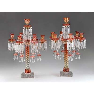 Pair of Baccarat rose teinte glass candelabra early 20th century