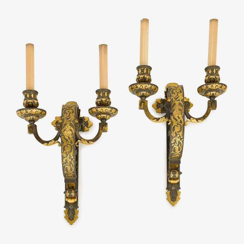 Pair of Renaissance Revival parcel gilt bronze sconces in the style of Edward F. Caldwell & Co.