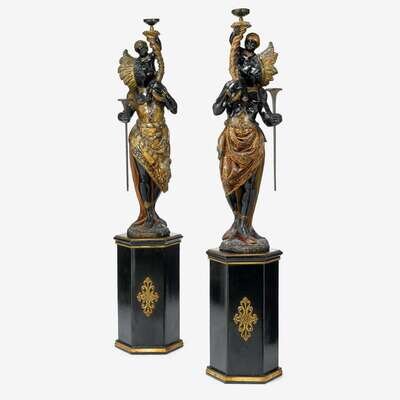 Pair of Italian polychrome blackamoor torcheres early 20th century