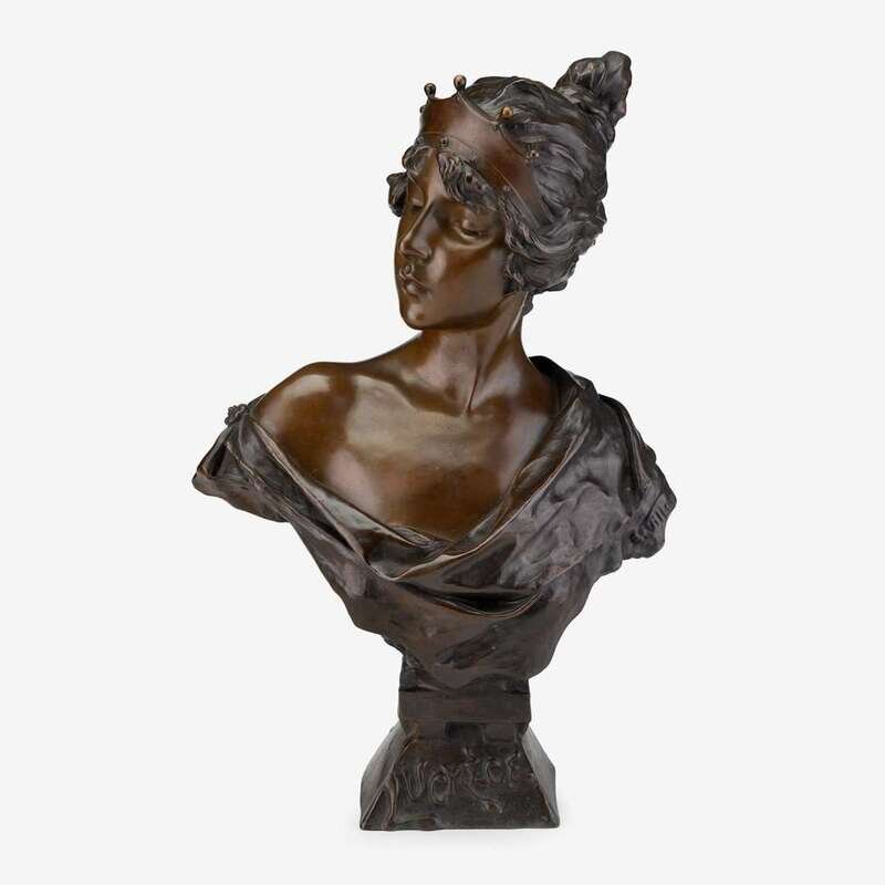Bronze, mid-brown patina, signed in cast to sleeve and titled to base, the reverse with Société des Bronzes de Paris pastille and impressed J.P. 3765.