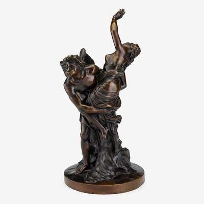 Bronze, mid-brown patina, cast to show the god of the north wind abducting the daughter of the king of Athens.