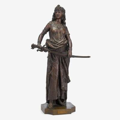 Bronze, dark brown patina, signed in cast CH Levy and A. Baslet, Lyon, the base mounted with plaque inscribed "Salome, par CH Levy".