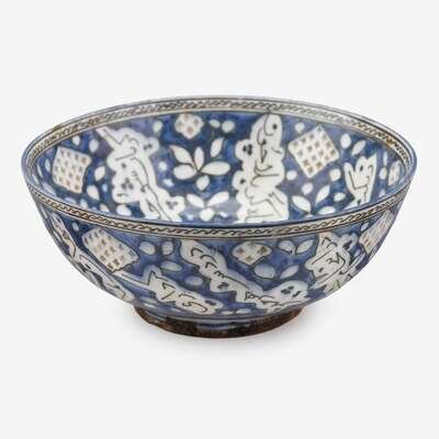 Safavid underglaze painted pottery bowl Persia, 17th/18th century