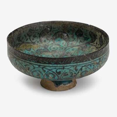 Persian Kashan underglaze painted turquoise footed bowl Persia, circa 13th century