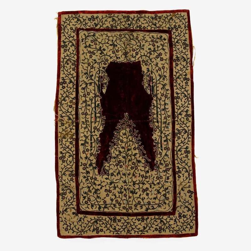 Ottoman embroidered wool applique and velvet prayer panel late 19th/early 20th century