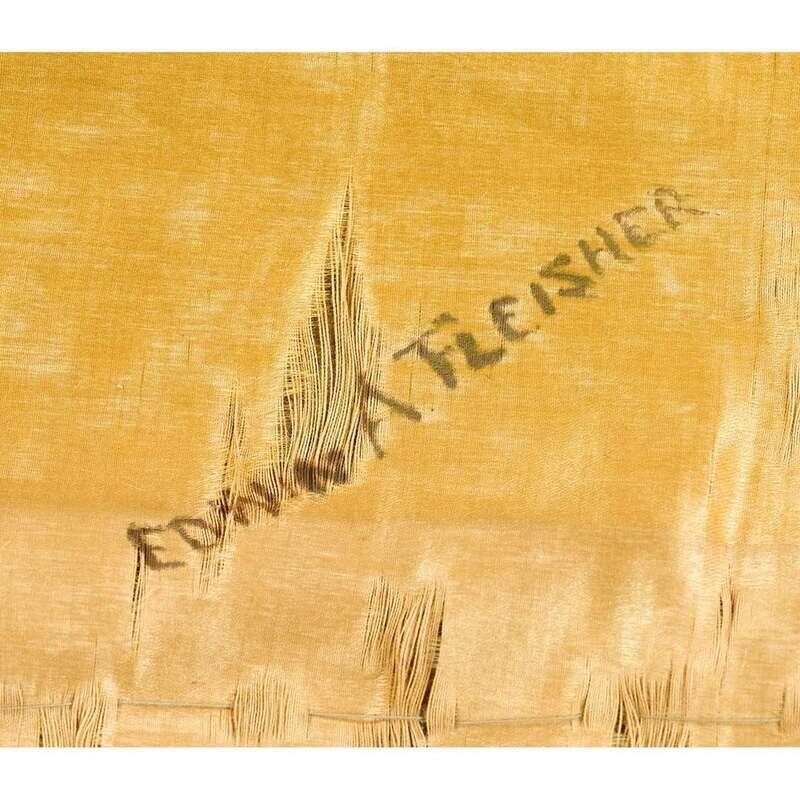 Embroidered with floral arabesques issuing leaves picked out in metallic threads to form an archway around a central velvet recess, the silk backing signed Edwin A Fleisher.