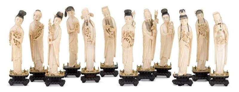 A group of twelve Chinese ivory carved immortals 19th century