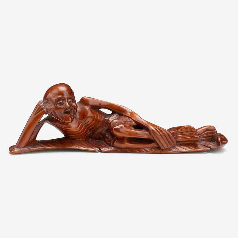 A Chinese carved boxwood figure of a Luohan qing dynasty, 18th century
