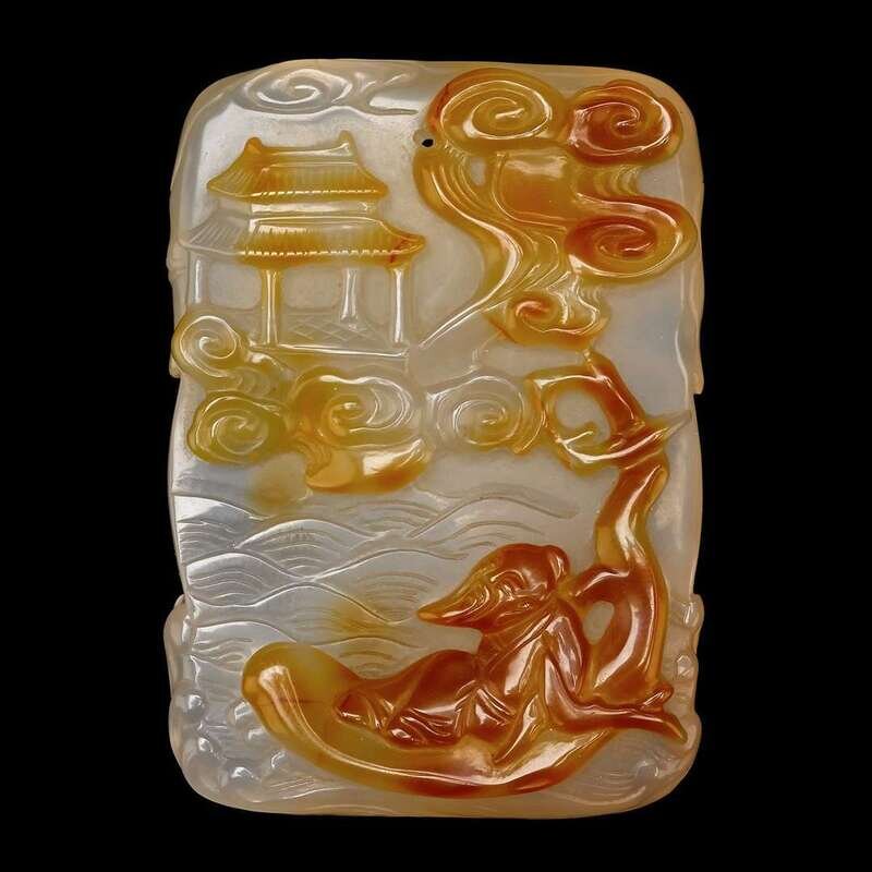 A Chinese carved agate plaque