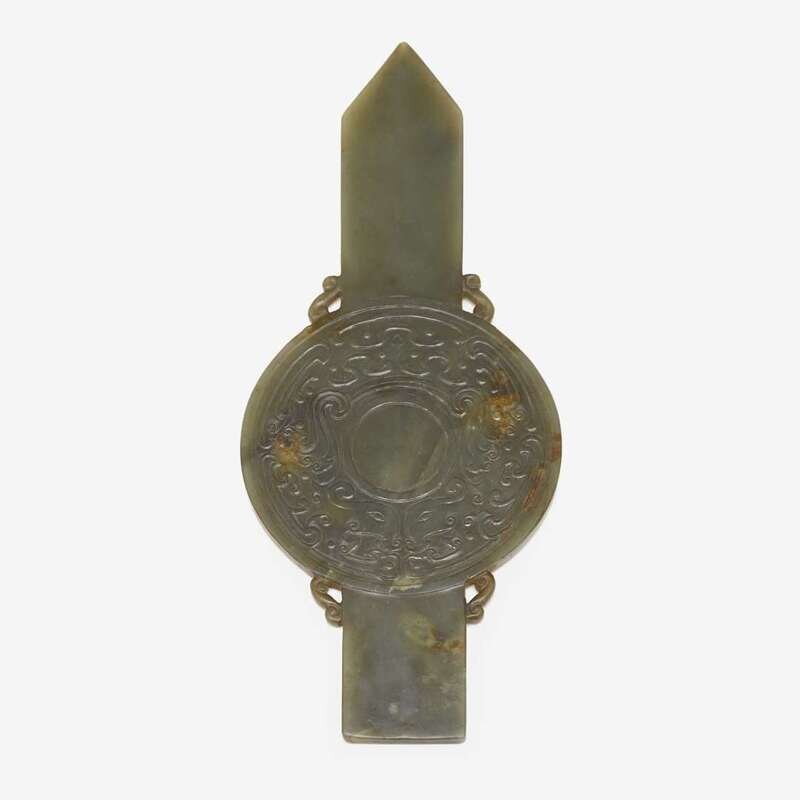 A Chinese carved mottled green jade gui and bi han dynasty or later