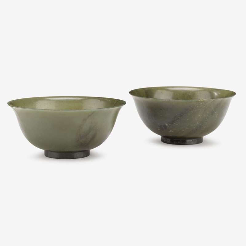 A pair of Chinese spinach jade carved bowls qianlong sealmarks and of the period