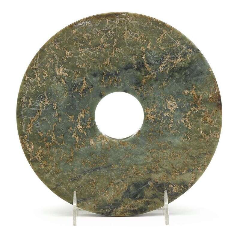 A large Chinese carved spinach jade disk