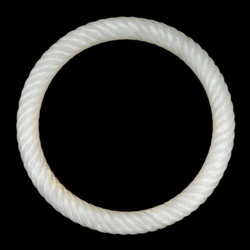 of thin and delicate form, carved to display a rope-like surface all around, jade of cream white coloration.