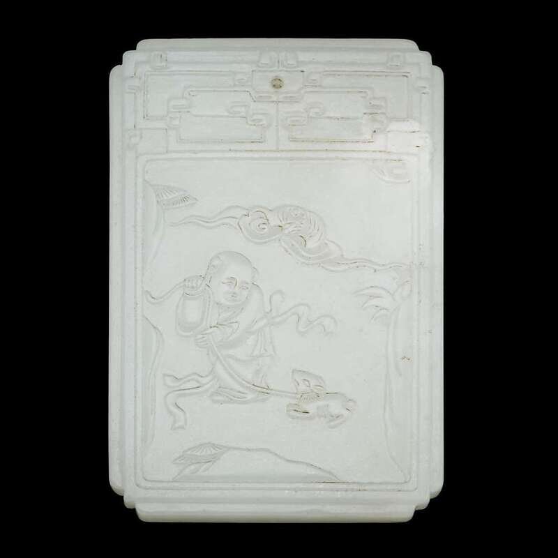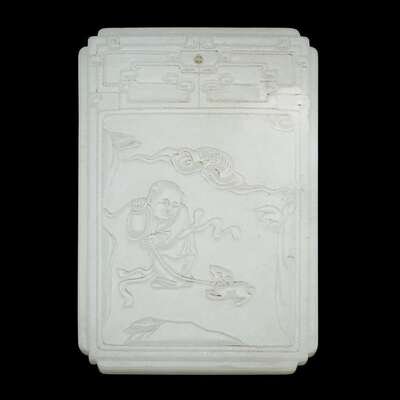 A carved Chinese white jade plaque