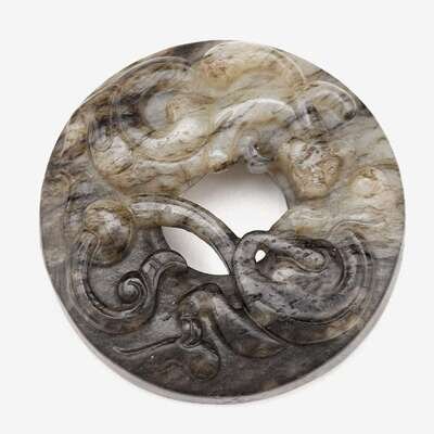 A Chinese black and white jade archaistic bi disc ming dynasty
