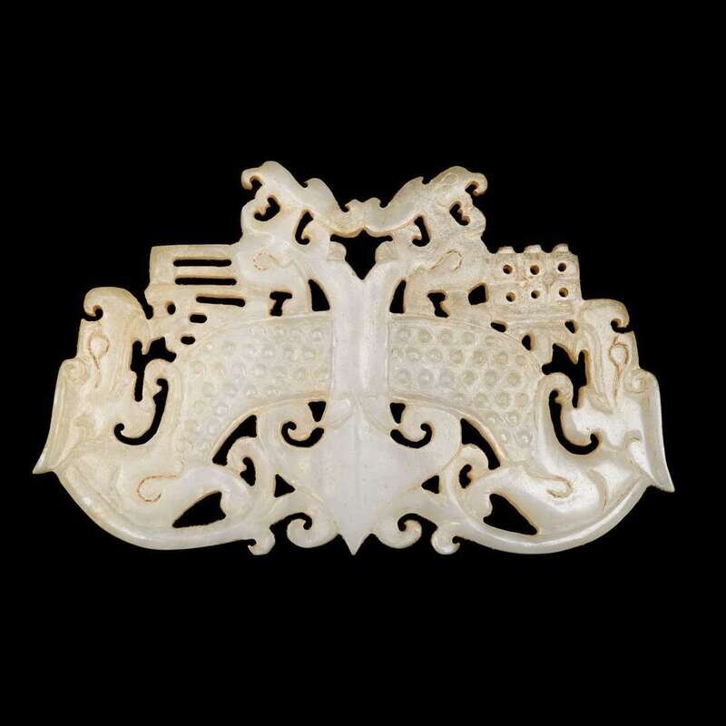 A Chinese carved white jade plaque han dynasty or later