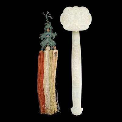 A Chinese carved celadon jade ruyi scepter 19th century