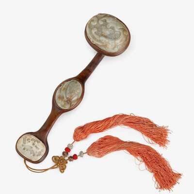 A Chinese huanghuali white jade inlaid ruyi scepter 19th century