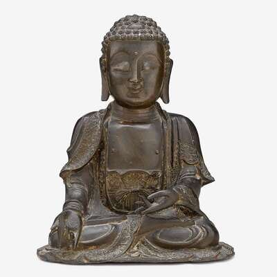 A well-cast Chinese bronze figure of Buddha Shakyamuni ming dynasty