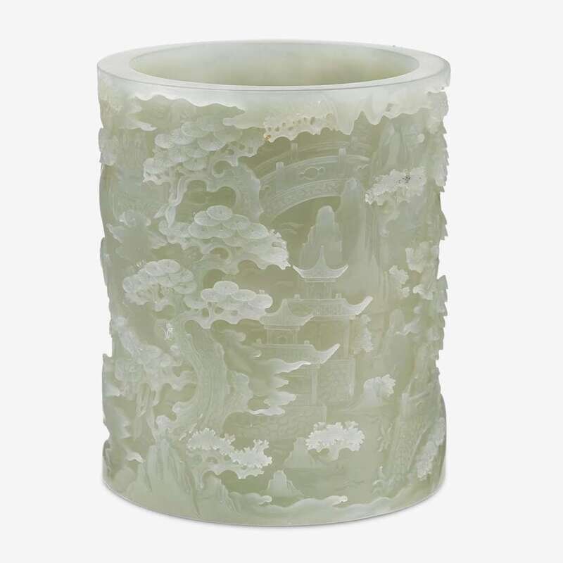 A Chinese carved white jade brush pot modern