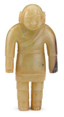 of smooth and rounded surface, shaped in the form of a simply dressed tribal male figure, possibly that of the khitans or the mongols.