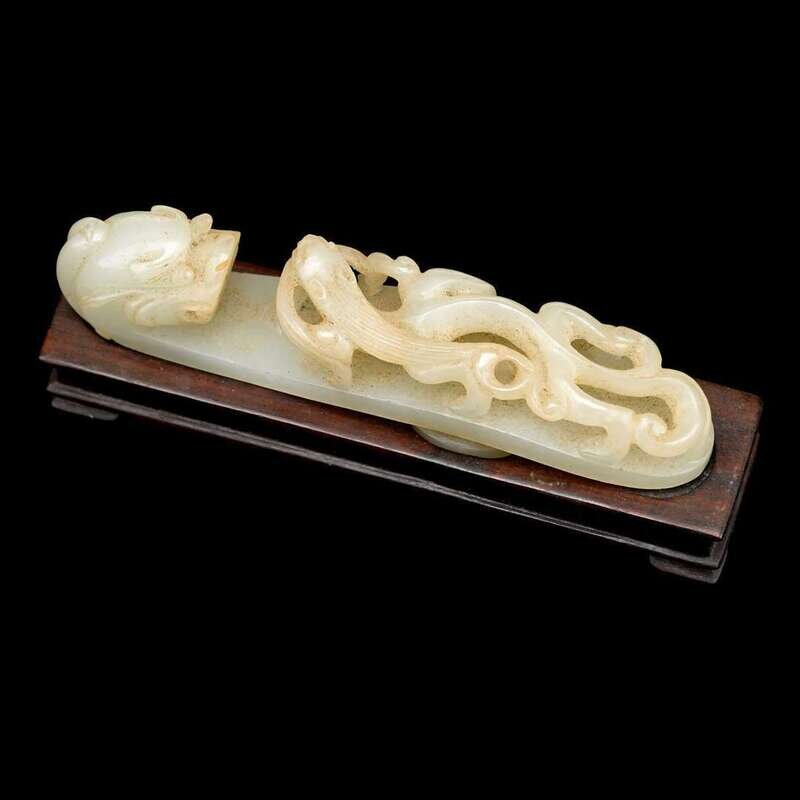 A Chinese carved celadon jade belt buckle qing dynasty
