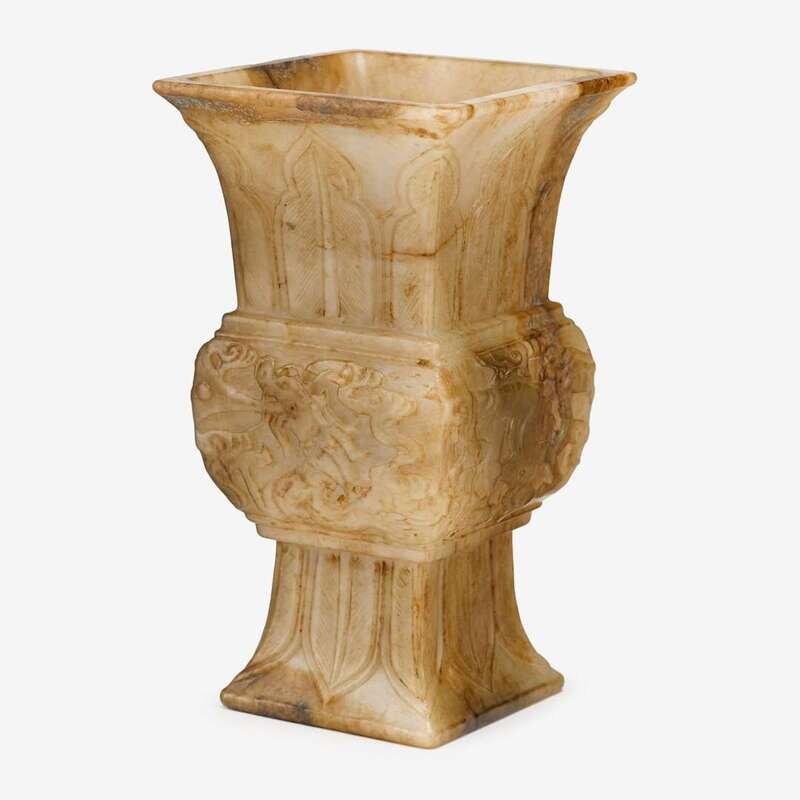A Chinese mottled jade archaistic gu vase ming dynasty