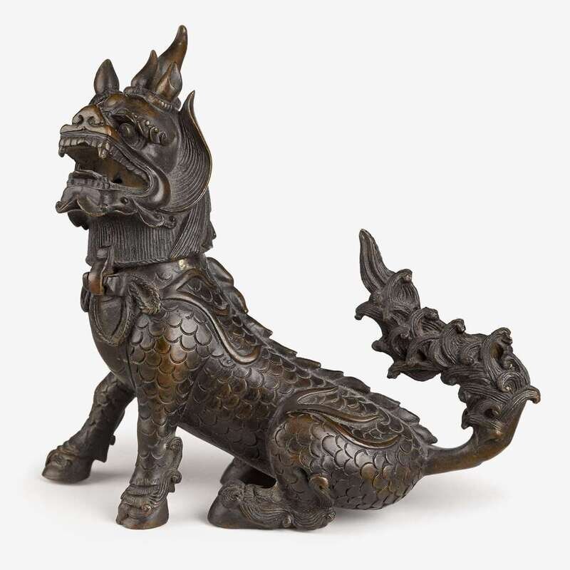 A Chinese cast bronze qilin form censer qing dynasty