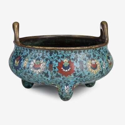 A large Chinese cloisonné enameled bronze censer xuande mark, early qing dynasty