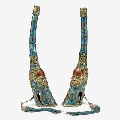 A pair of Sino-Tibetan cloisonné trumpets early 20th century