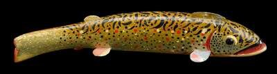 Large carved and painted brook trout fish decoy attributed to oscar w. peterson (1887-1951), cadillac, mi