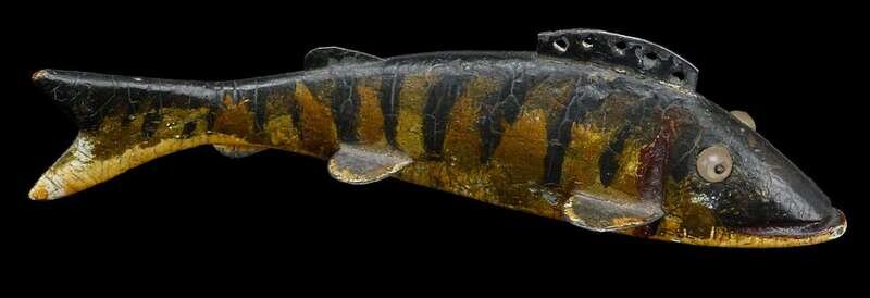 Carved and painted perch fish decoy attributed to oscar w. peterson (1887-1951), cadillac, mi