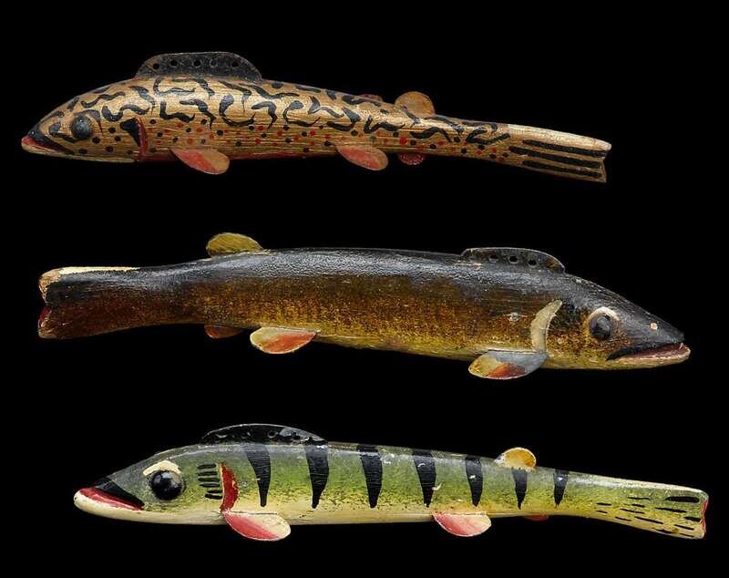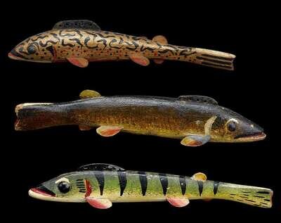 Three fish decoys two attributed to oscar w. peterson (1887-1951), cadillac, mi