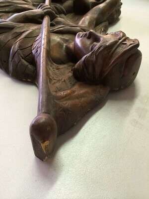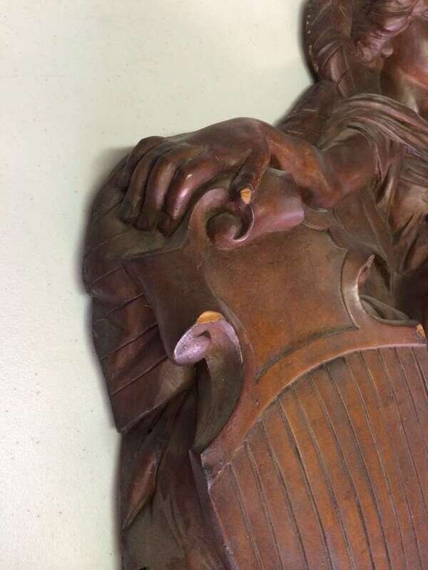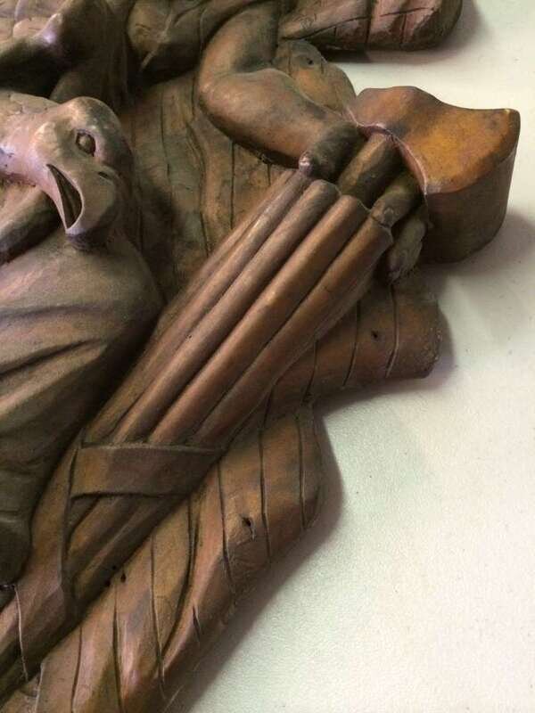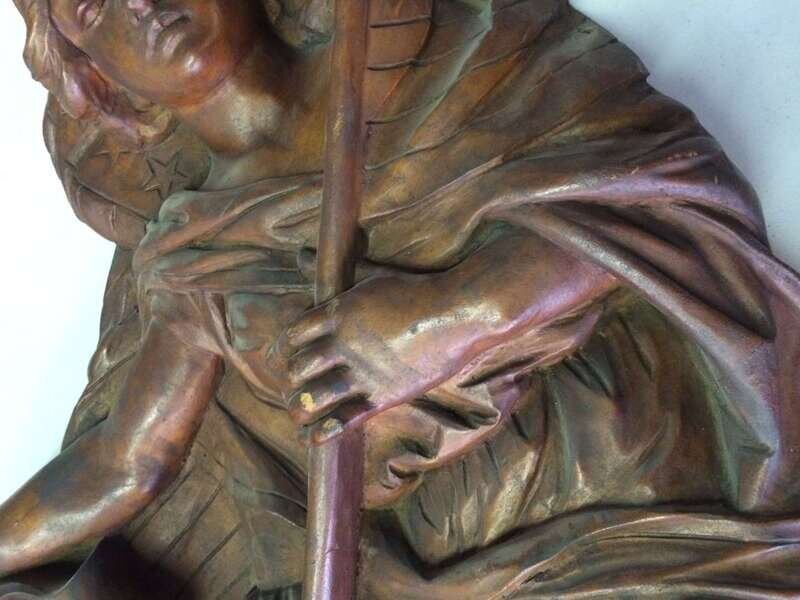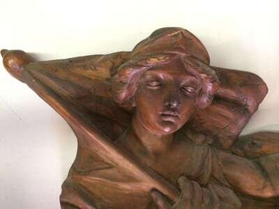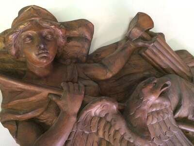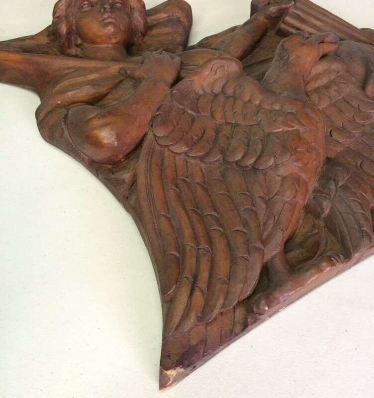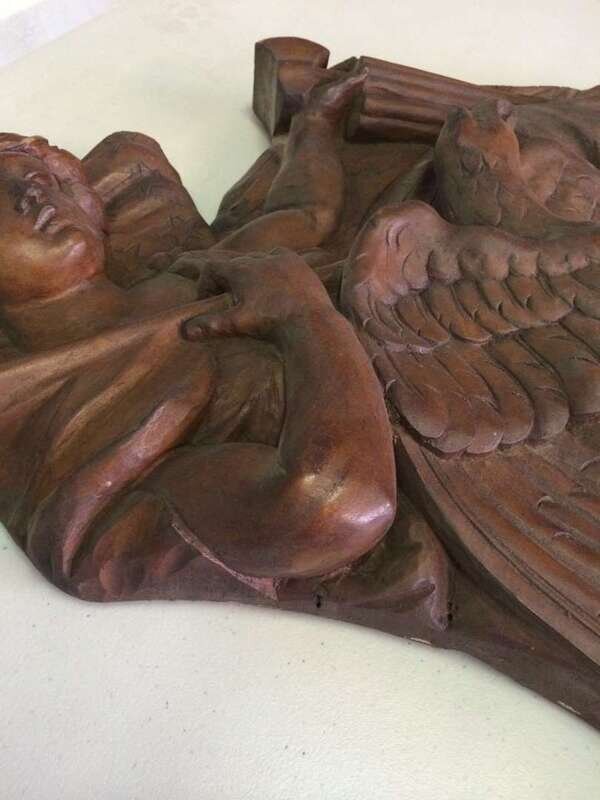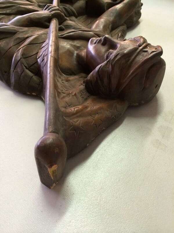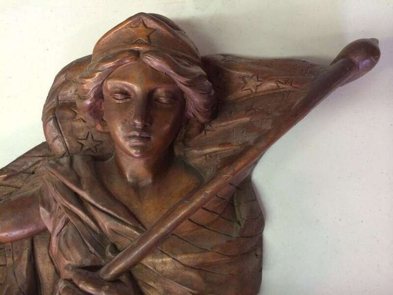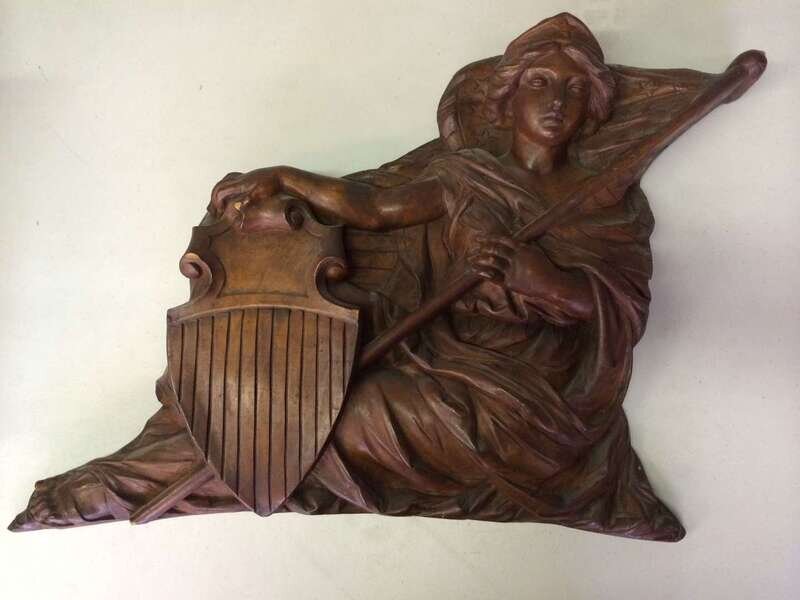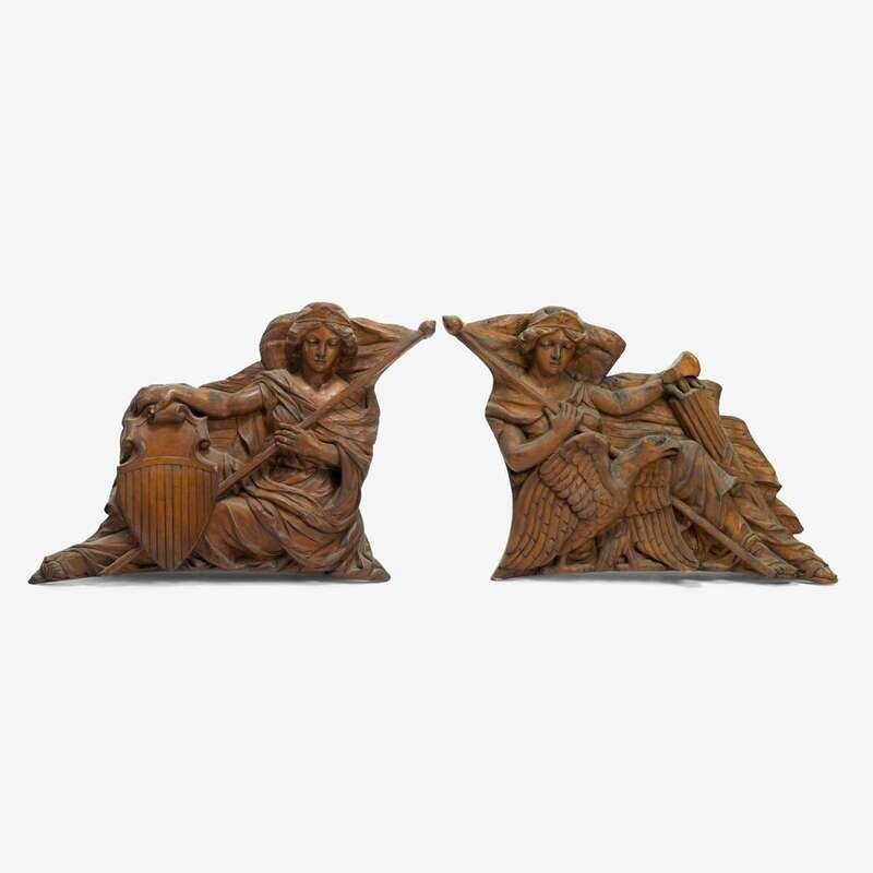 Pair of unpainted, carved "Lady Liberty" or "Columbia" carousel panels philadelphia toboggan company, germantown, philadelphia, pa, circa 1928